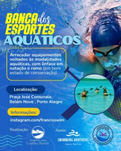 A Banca dos Esportes Aquáticos acontece todos os domingos, sempre que houver treino de águas abertas, e tem como foco principal a arrecadação de equipamentos voltados às modalidades aquáticas, com ênfase em natação e remo. A iniciativa busca mobilizar a comunidade esportiva em torno da solidariedade, transformando equipamentos pouco utilizados em oportunidades reais de inclusão, saúde e desenvolvimento social.
