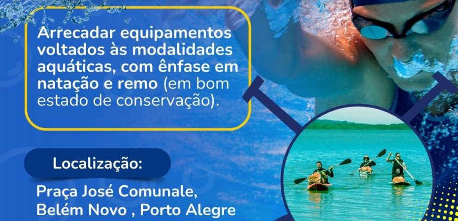 - Promoção de campanhas e ações solidárias, incentivando a doação de equipamentos esportivos adequados, seguros e apropriados para a prática da natação e do remo.
