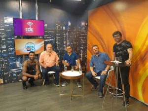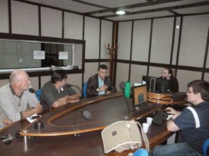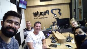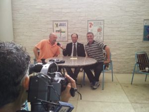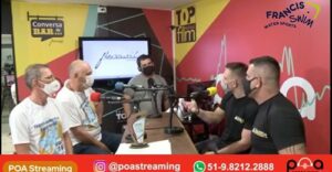 Programa Pampa Saúde com o Dr. Enio Aguzzoli? entrevistando a nutricionista esportiva Roberta Sant’Anna Volkart? nadadora master da ALJ, Francismar Pedro Siviero? redator de notícias do Portal Francisswim? e Jair Pedersen Albuquerque? nadador master do Clube Caixeiros Viajantes.