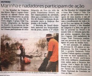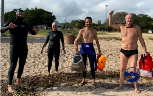 Projeto Nadando Pelos Cartões Postais realiza limpeza da orla do Lago Guaíba em Belém Novo
