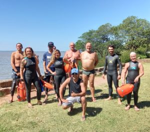 Grupo de nadadores explora as águas do Guaíba em Porto Alegre